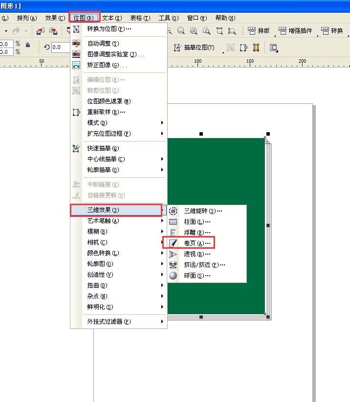 6、點擊菜單【位圖---三維效果---卷頁】,在彈出來的對話框選擇右上角卷頁,確定。就看到效果了。