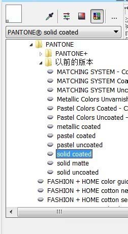 4、打開顏色泊塢窗中的“顯示調色板”按鈕,然后選擇所要轉換的色卡,如圖所示,這個例子使用了潘通色卡。