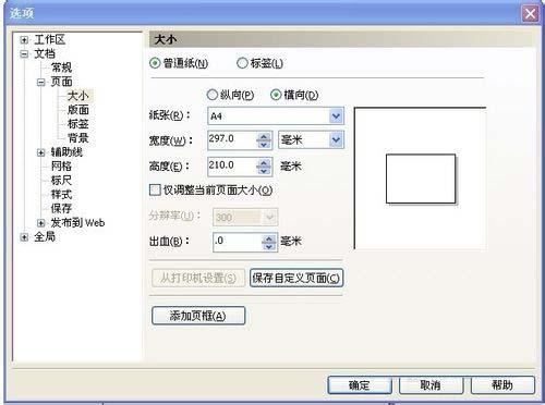 1、選擇(文件)新建命令新建文檔,再選擇(版面—頁面設(shè)置),在彈出的對話框中設(shè)置頁面大小為A4,擺放方式為橫放。