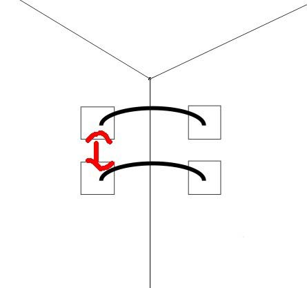 12、再選取上述整體,左鍵按住向下拖動一段距離,(紅色標出的拖動距離自己掌握),再按一下右鍵完成復制工具,(此處也可用ctrl+C、ctrl+V的操作來完成),與此同時按住Ctrl鍵,保證垂直向下復制,效果圖如下: