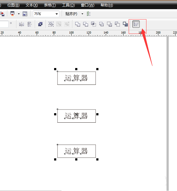 5、選擇矩形和文字,復制(選擇文字,點右鍵就復制了)按住ctrl是垂直方向或水平方向直角方向走。復制三個。選擇,全選,點擊如圖。垂直對齊,平均分布。