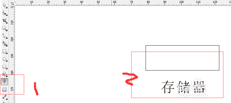 3、在矩形底下寫幾個字,按“字”文本工具在工具欄中,輸入存儲器幾個字。