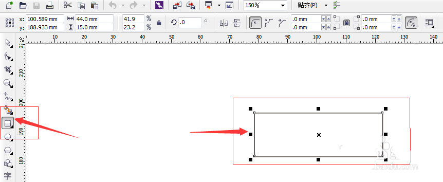 2、選擇矩形快捷鍵F6畫一個寬44mm高15mm的矩形,如圖。