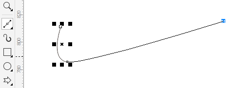 1. 打開CorelDRAW X8軟件,新建文檔,選擇工具箱中的“貝塞爾工具”,在繪圖區域,鼠標右鍵點擊定點,然后移動鼠標到適當位置拖動拉出手柄得到一條曲線時釋放鼠標,得到下圖所示曲線路徑。