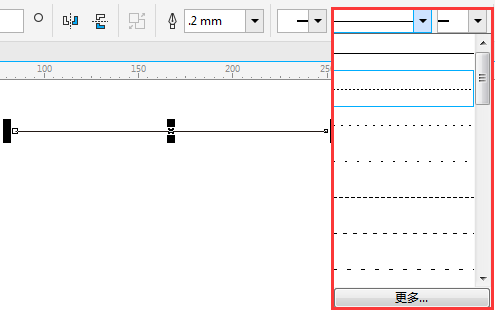 2. 在“選擇工具”狀態(tài)下,通過(guò)屬性欄中的“輪廓樣式”設(shè)置虛線,如圖。