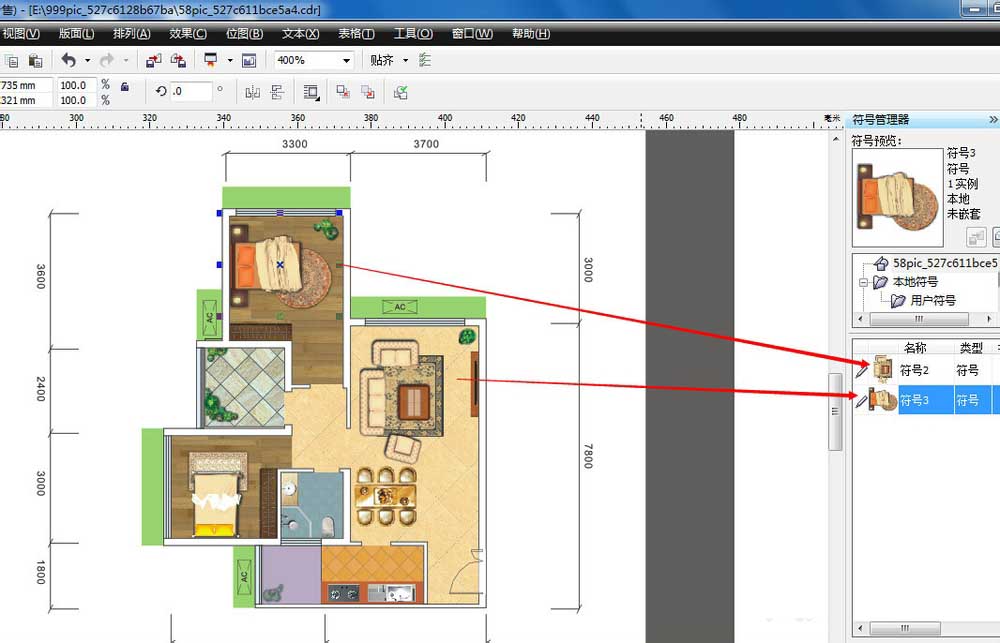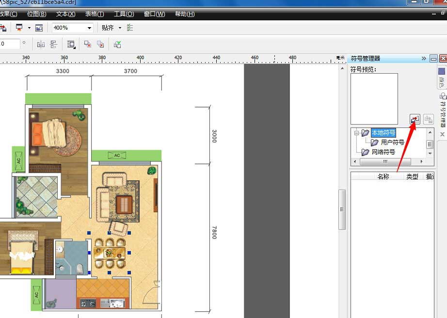 6、打開保存好的符號庫,然后直接鼠標點擊不放,直接可以拖入到文檔中使用。