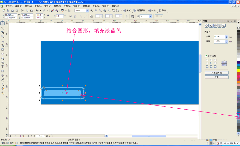 先建一個(gè)藍(lán)色底的框,大小150*60(mm)