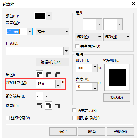 提示:如果在設置輪廓的過程中出現飛邊,將斜接限制更改為45度時,這些問題將不復存在。相關閱讀可點擊CorelDRAW中如何解決字體輪廓尖突問題?進行了解。