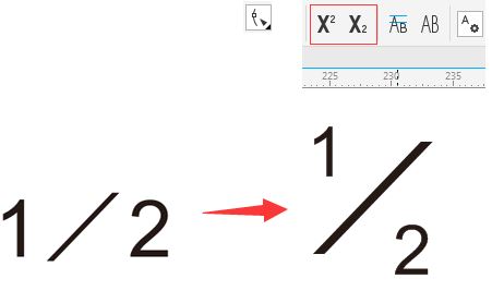 方法二:輸入法中的小鍵盤(軟鍵盤)選擇數學符號中有“/”符號,不過在輸入文本之后,使用“形狀工具”單一文本,借助菜單欄中上標、下標來實現。