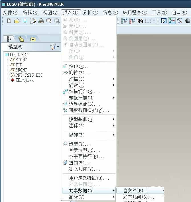 4、在proe5.0里新建一個logo,然后導入上面導出的dxf文件。
