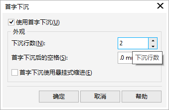 3. 勾選“使用首字下沉”激活對(duì)話框,在“下沉行數(shù)”數(shù)值框中輸入需要下沉的行數(shù)。