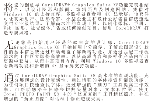 1. 使用F8“文本工具”,在CDR繪圖區(qū)域拖動(dòng)鼠標(biāo)實(shí)現(xiàn)段落文本框,在框內(nèi)單擊添加段落文字,或者也可以從已有文字中復(fù)制文本到文本框。如圖所示。