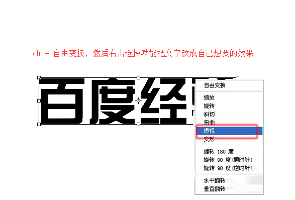4、Ctrl+t自由變換,然后右擊改變字的形狀,如圖,我用的是透視。