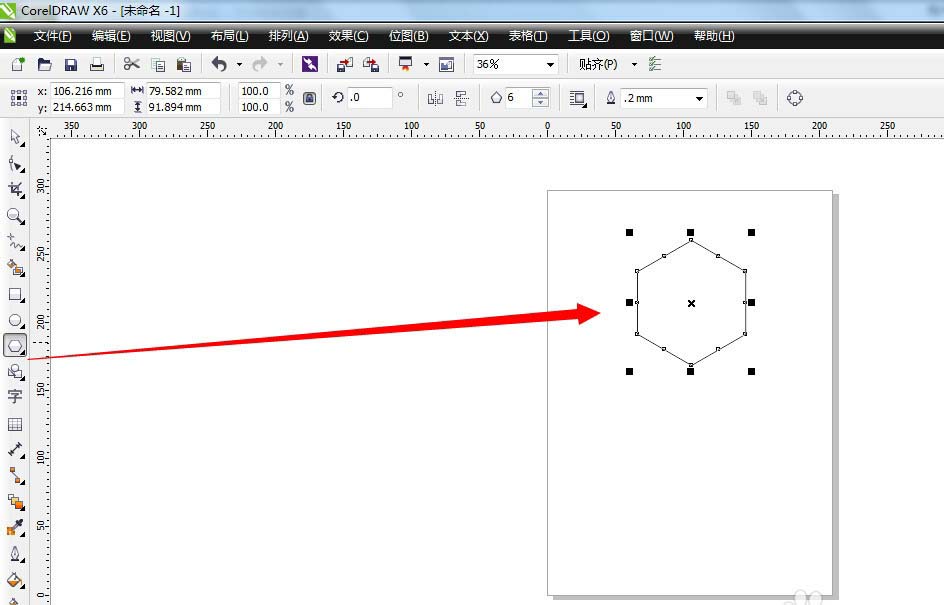 1、在cdr軟件里面新建了頁面之后,選擇使用多邊形工具,并且在頁面上方工具欄里設置多邊形的邊數(shù)為6