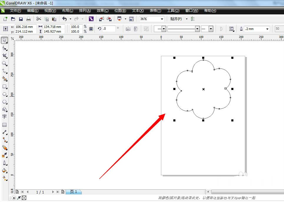 6、接著就可以在頁面上看到一個花瓣的輪廓圖形,大概就是圖中所示的圖形
