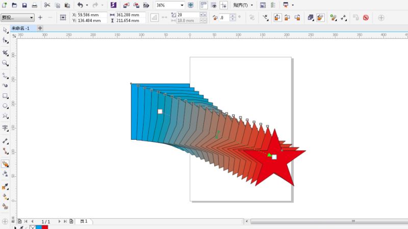 3、第三步:選擇調(diào)和工具,在工作區(qū)內(nèi)從一個(gè)圖形拖動(dòng)到另一個(gè)圖形,松開(kāi)鼠標(biāo),效果如圖。
