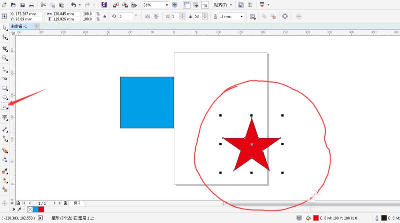 2、第二步:用星形工具繪制一個(gè)星形,并且填充顏色。