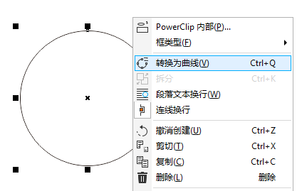 1. 使用“橢圓工具”按住Ctrl鍵繪制正圓,鼠標右鍵將圓執行“轉曲”操作(快捷鍵Ctrl+Q)。
