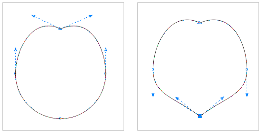 3. 使用“形狀工具”分別調整尖突節點左右兩邊的手柄,創建一個銳角,正圓底下的節點,使用同樣的操作步驟。