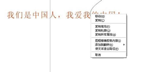 5、用鼠標按住文字內容不放,移動到弧形曲線的那里,出現(xiàn)幾個選擇后,放開鼠標,選擇功能。