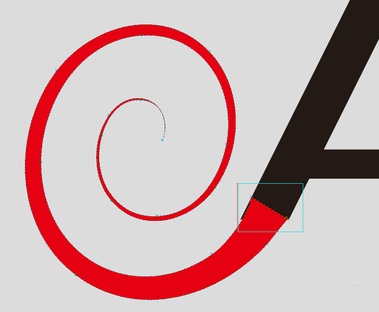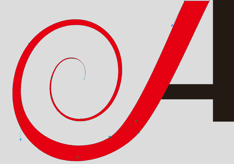 ⑧ 我們把曲線填充紅色,放到字體上然后調節下曲線和字拼接處的錨點,把大小調節到差不多等大就行,只要把2個錨點放到字體輪廓邊緣就可以了不需要細調