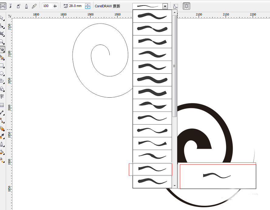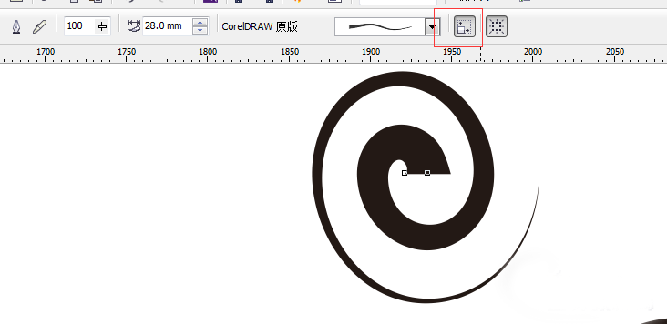 ⑦ 拆分以后得到上面的形狀還有我們之前畫的螺紋線,刪除螺紋線,只保留我們要的藝術筆形狀,到這里這個曲線就繪制好了~~