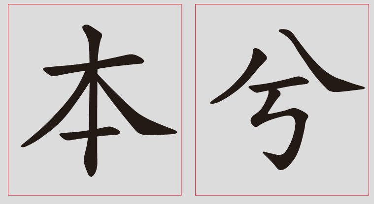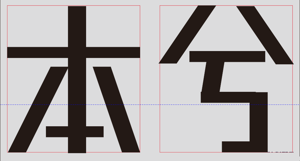 到這里已經完成了曲線造字中的矩形造字部分,剩下的就是添加曲線。