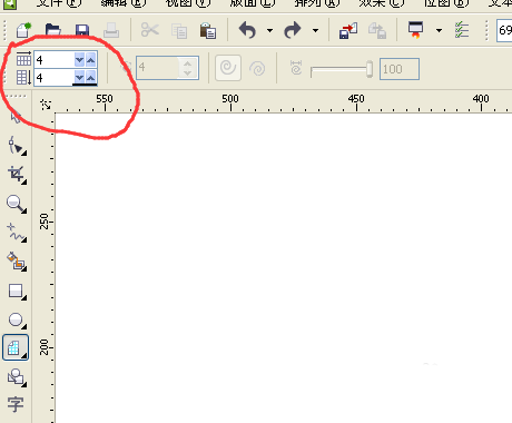 2、設(shè)置行和列的參數(shù),如左圖,然后在工作區(qū)域按照鼠標(biāo)左鍵,建立圖紙。如右圖,