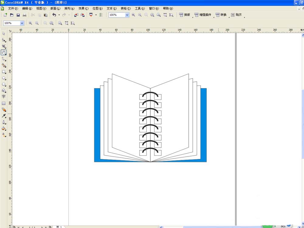 9、按Shift鍵將弧形和兩個矩形選中,然后按Ctrl和鼠標左鍵拖動,右擊鼠標,復制多個,這樣,一個筆記本就完成啦。