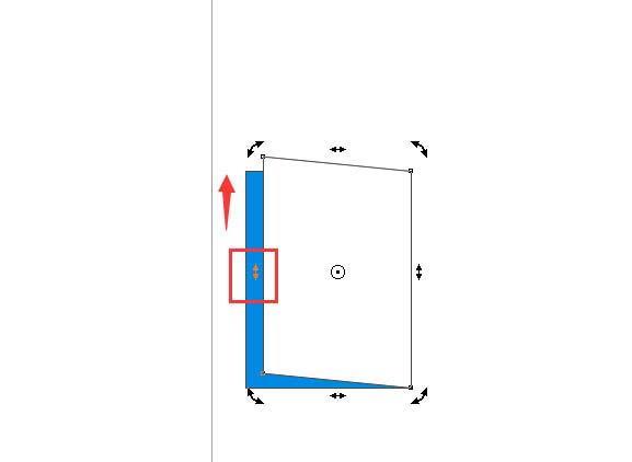 3、用挑選工具點擊矩形,然后在矩形左邊出現的上下的地方,用鼠標左鍵向上拖動,進行斜切。