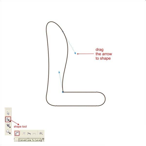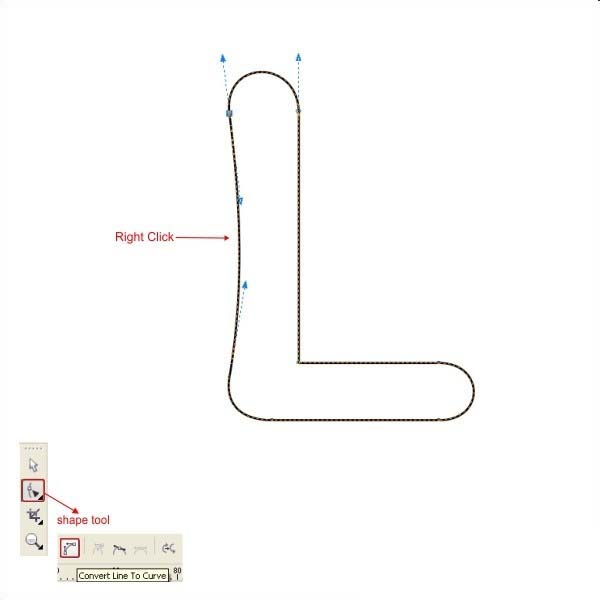 5、轉(zhuǎn)到“形狀工具”,然后右鍵點(diǎn)擊的“L”中間左側(cè),現(xiàn)在你會(huì)看到在角落的箭頭拖到為了塑造。