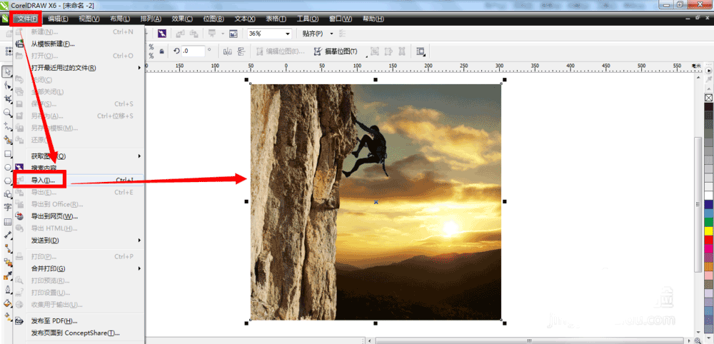 1、首先通過“文件”——“導入”,把我們的圖片導入到cdr軟件頁面上