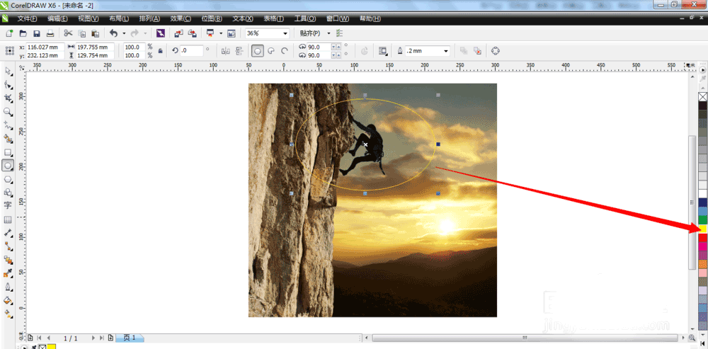 3、有時候在一些特殊的圖片上,黑色邊框不一定能看見,這時候,可以選中橢圓形,鼠標右擊調色板里的某一種顏色,改變邊框的顏色