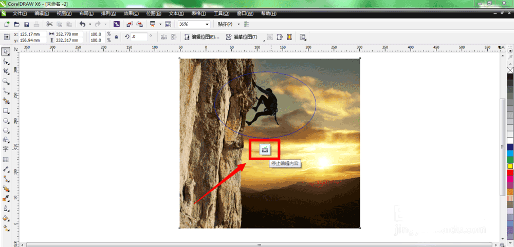 8、移動圖片到合適的位置后,點擊“停止編輯內容”按鈕