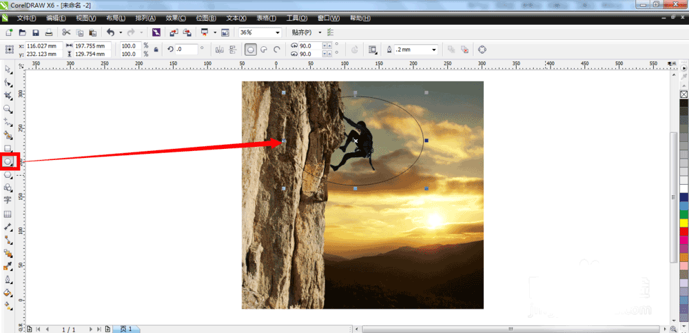 2、比如,我們想要把這張圖片裁剪成為橢圓形的圖片。先使用橢圓形工具,在圖片上方繪制一個橢圓形