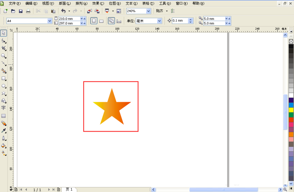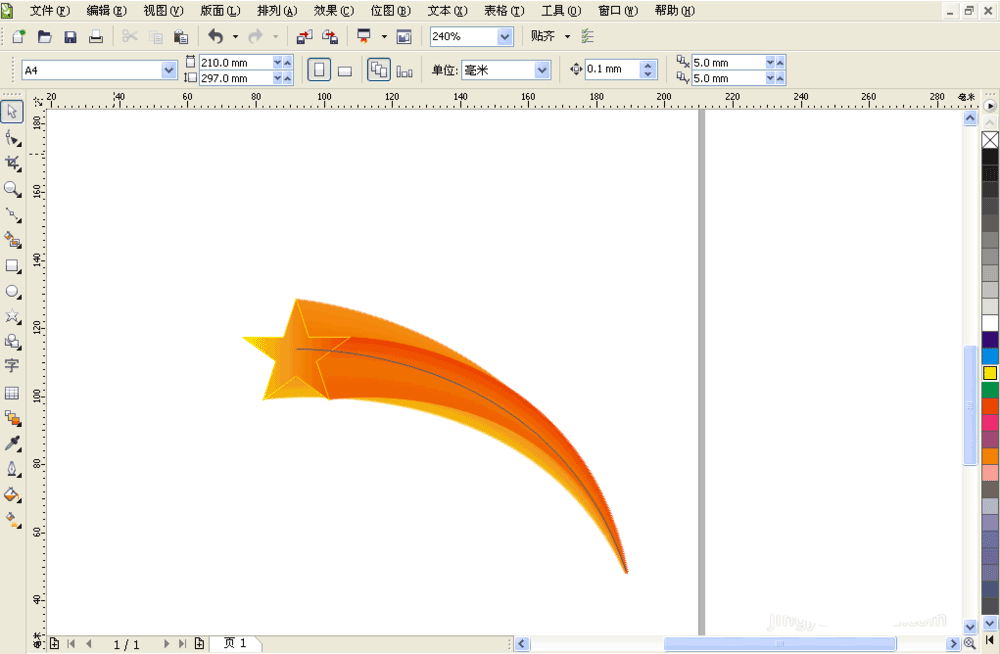 3、繪制一個(gè)五邊星星,填充漸變色。
