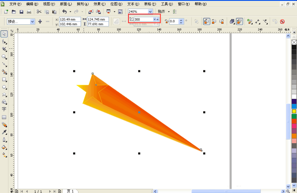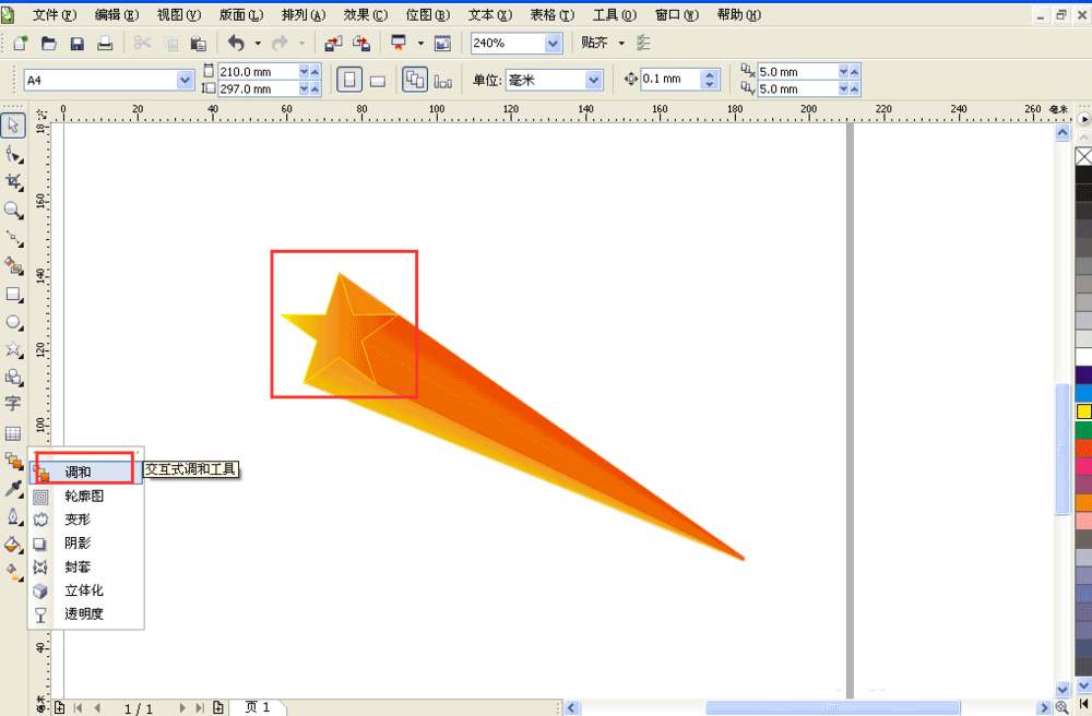 5、選中交互式調(diào)和工具將兩個(gè)星星調(diào)和,調(diào)和步驟設(shè)置的偏移量要大于等于300,選中大的星星填充外輪廓為黃色。