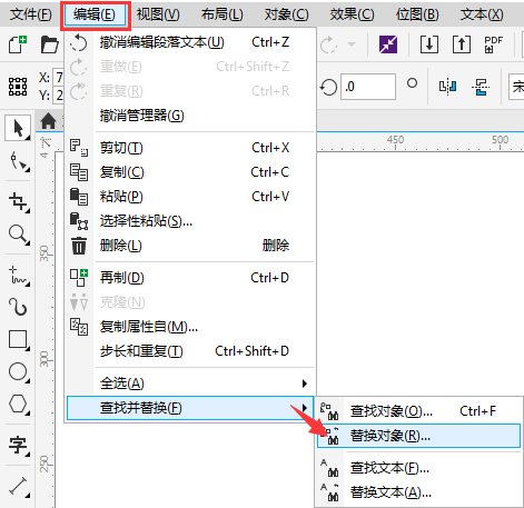 1. 執(zhí)行菜單欄“編輯>查找并替換>替換對(duì)象”。