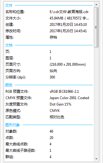 5. 除了可以向文檔添加繪圖信息,還可以快速訪問繪圖信息,包括文件的位置、大小、創(chuàng)建時間;文檔尺寸、屬性、顏色模式等所有信息。