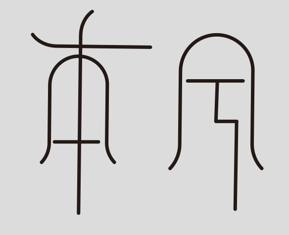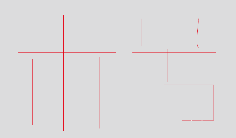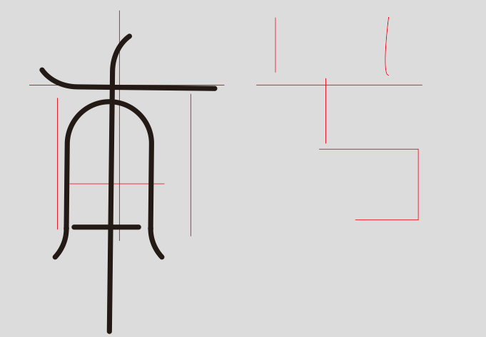 這一步是決定字體風格的,因為線條變成直線以后,字體的識別性大大降低了,為了提高識別性和字體美觀,我們需要對字體進行修飾,對于鋼筆造字,輪廓的修飾主要有S型造字、U型造字和Z型造字,本字的2條豎線和兮字的頂頭2條豎線很明顯是要連接起來的,2條豎線的連接可以考慮U型和Z型,這里采用U型