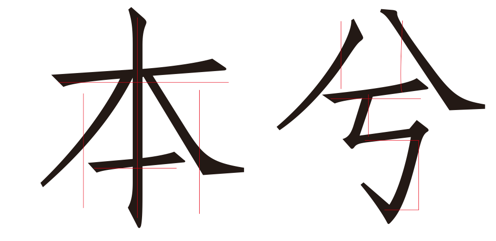 鋼筆字體的骨架做好以后需要一些后期的修整,比如調節筆畫之間的間隙,筆畫的長短,字體的整體大小,還有角的處理。