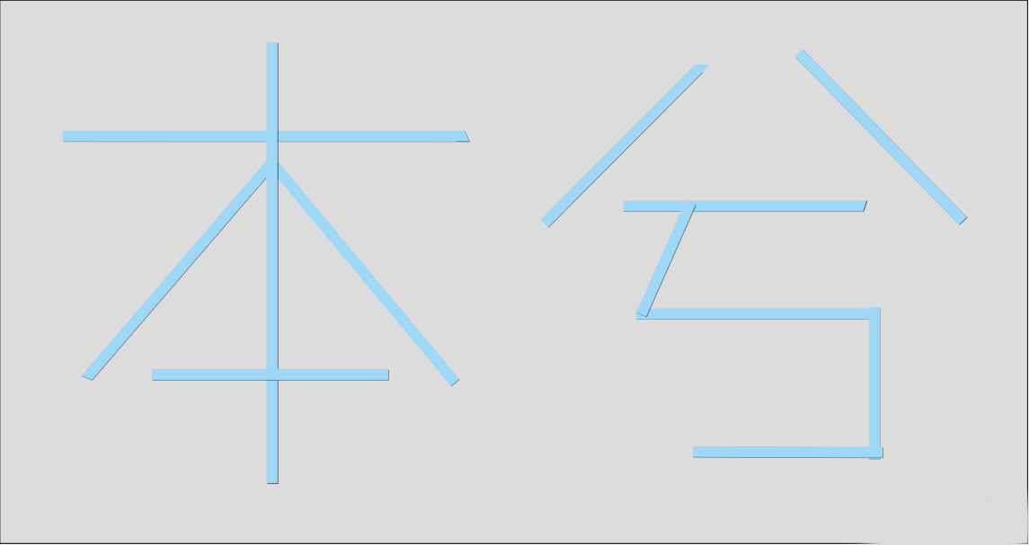 添加陰影以后,我們還需要調節筆畫的疊放次序,我這里是讓筆畫上下錯開的,比如本字的豎,他是放在第一橫和撇、捺的上面的,然后最后的橫就放在豎的上面。