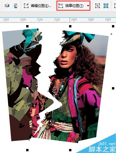 步驟5:選擇整個圖片(左側圖片和右側圖片)復制一份備用,單獨選擇左側圖片執行“描摹位圖>快速描摹”命令,右側實施同樣操作。