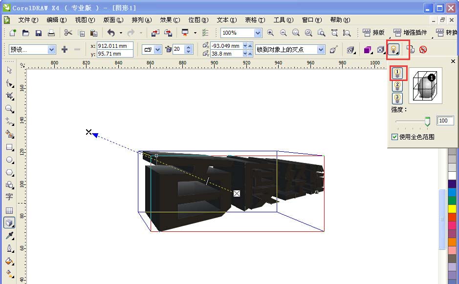 4、添加立體光源,如圖,通過這些設(shè)置,咱們可以看到立體效果的變化。