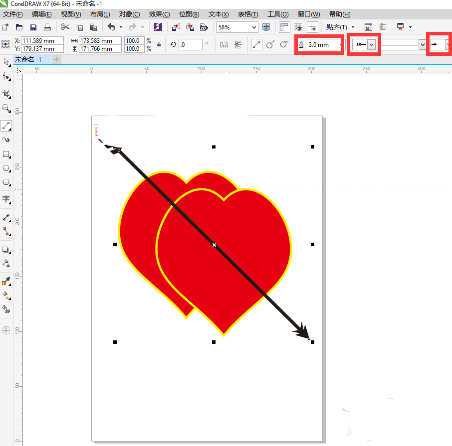 8、然后我們在直線的屬性欄中給箭頭添加一個前箭頭樣式和尾部的樣式,然后將其設(shè)置粗一下。