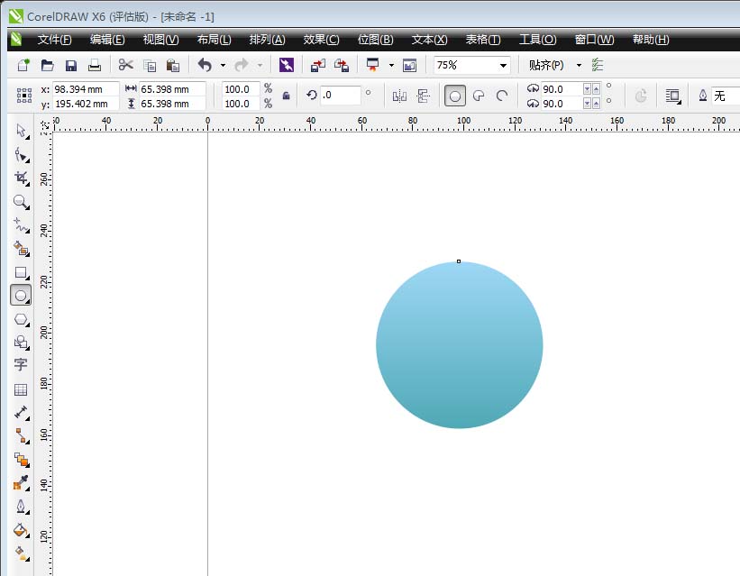 2、填充該圓形的顏色,使用“填充工具”中的“漸變填充”按鈕。設(shè)定完顏色后將輪廓設(shè)置為無(wú)即可。