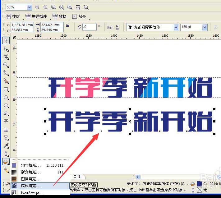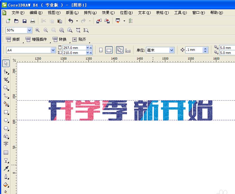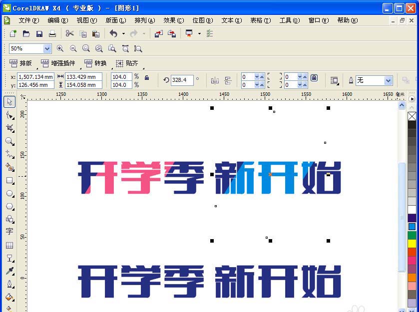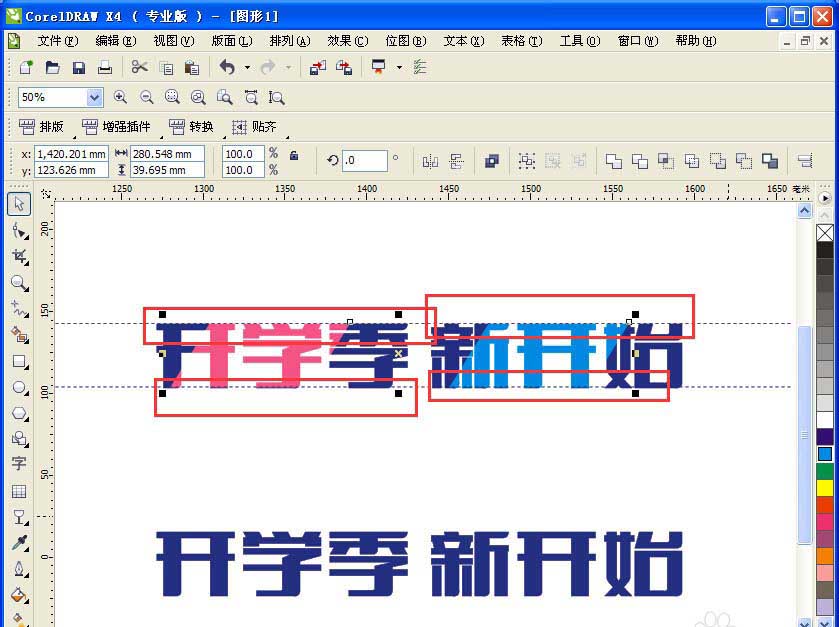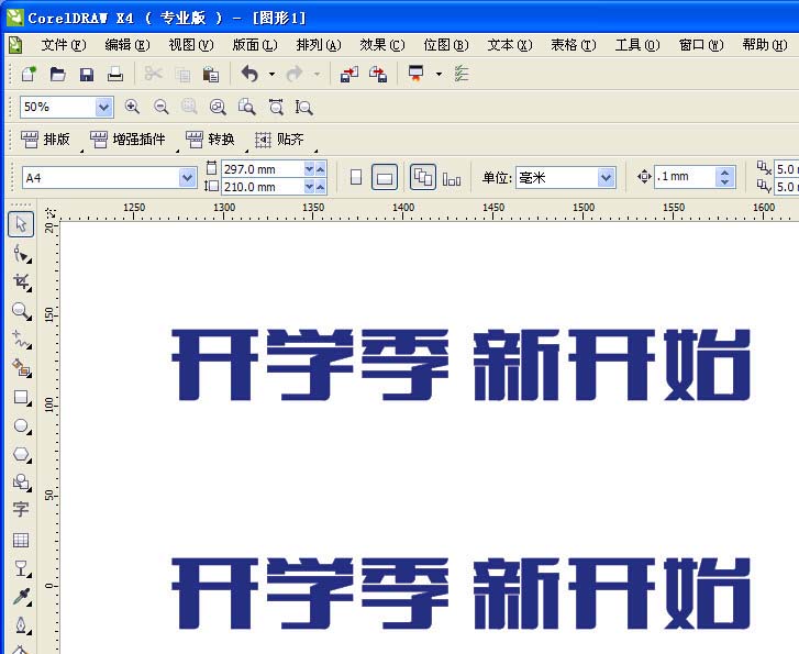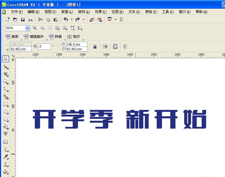 2、選擇文本工具,輸入“開學季 新開始”文字,選擇深藍色,如圖,