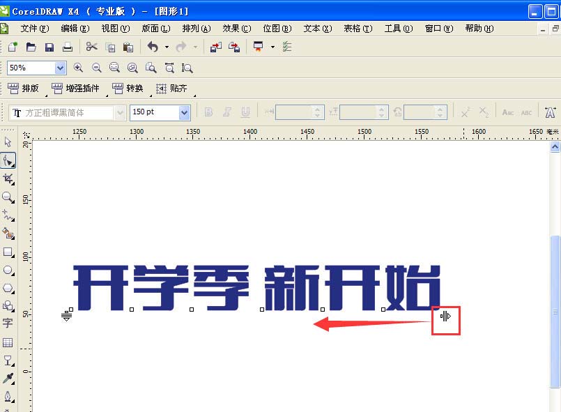 3、適當調整文字距離。左鍵單擊文字,然后按F10,然后適當調近文字的間距。如圖。