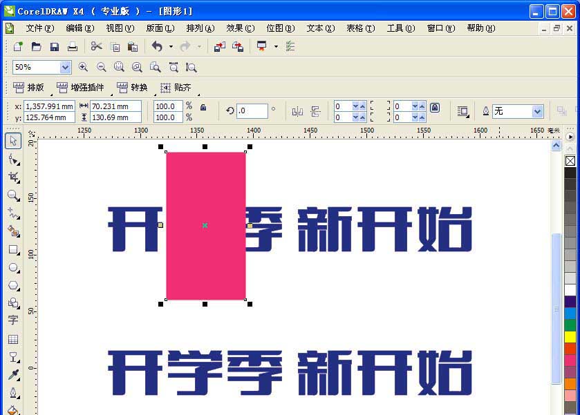 2、畫矩形(矩形大小適當,高度超出文字即可),填充洋紅色,如圖,