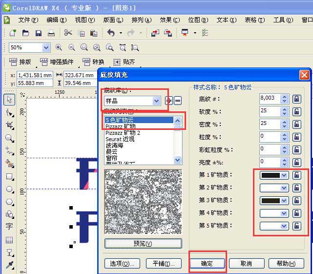 3、接著彈出設置框,如圖,紅色框參數設置底紋,然后點擊“確定”